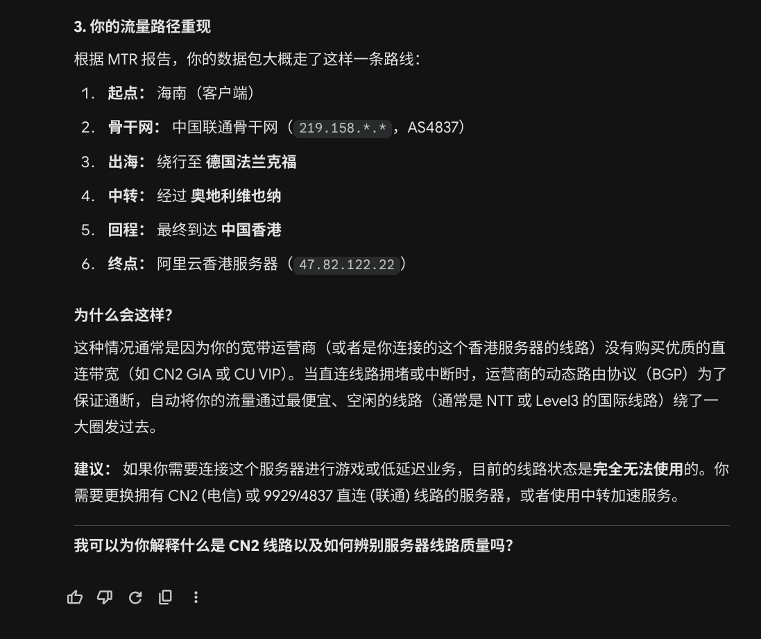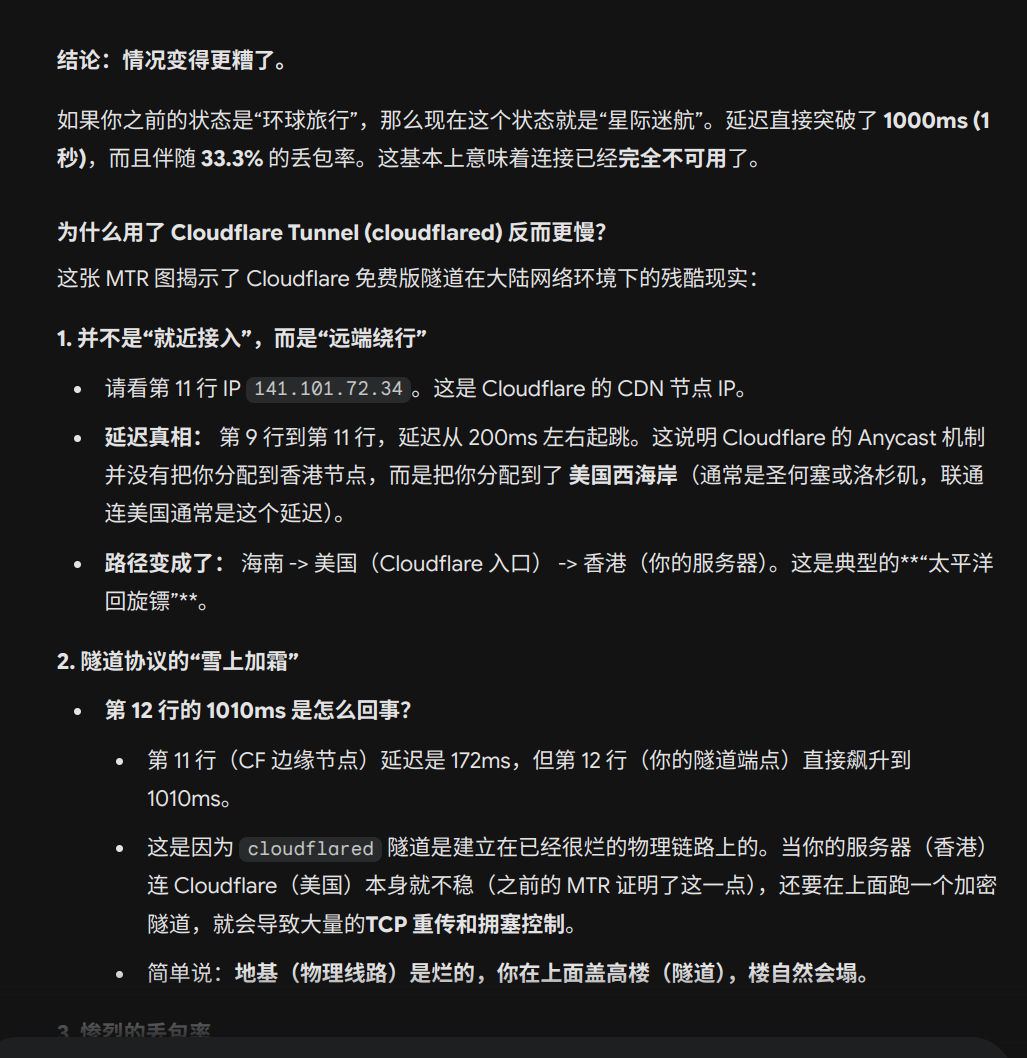 👩💻: 嗯。虽然仍然有可以感知到的延迟,但连接很稳定,不会像之前直连那样突然卡死让人难受了。