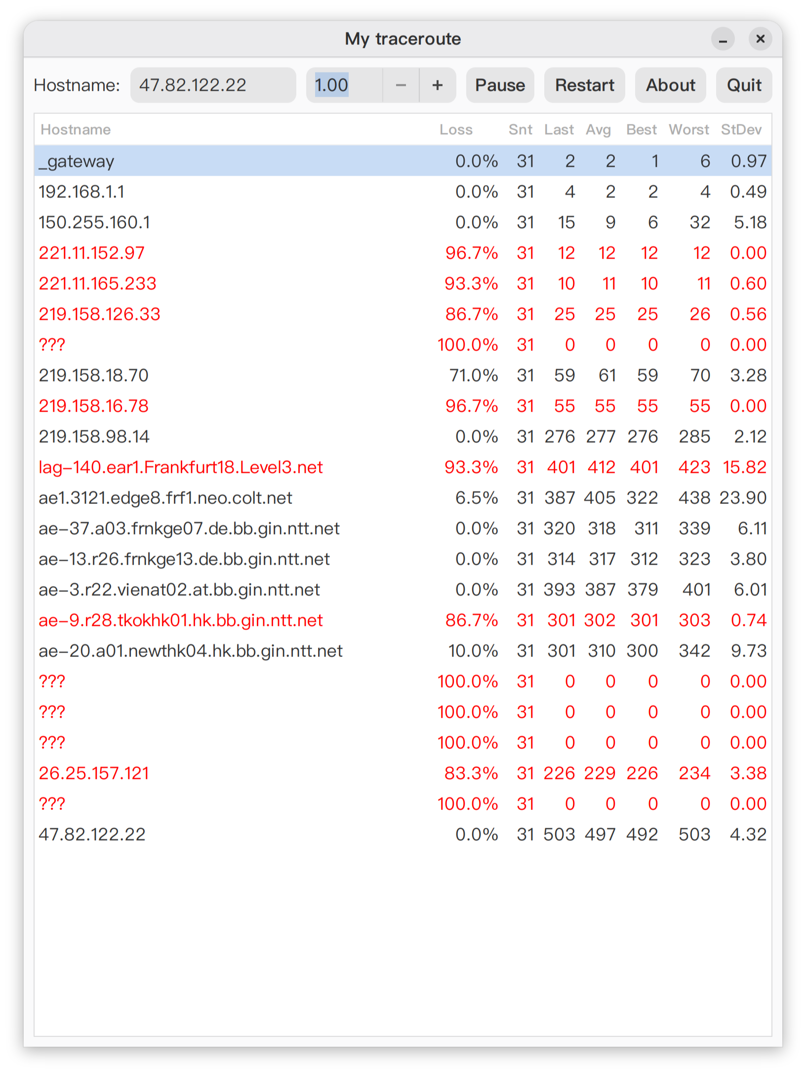 😷:嗯... 我看了下从你客户端直连到服务器。。。。怪不得那么卡